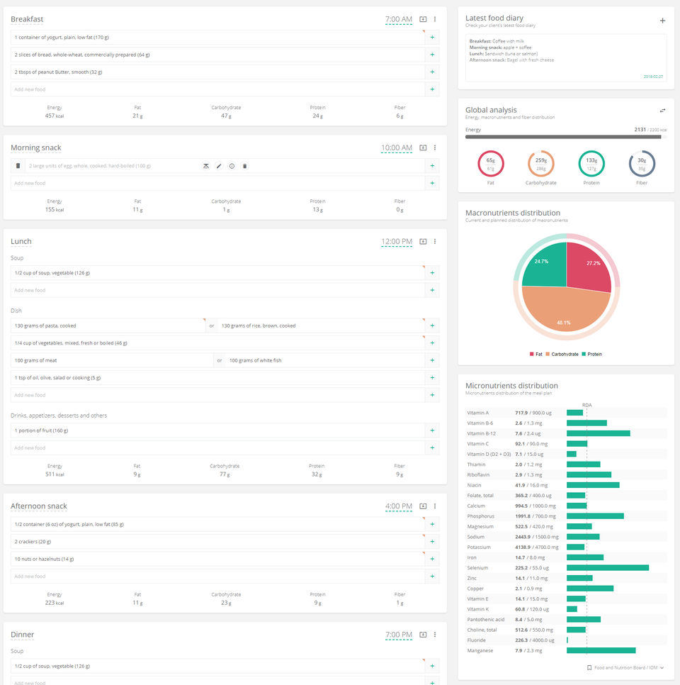 - Meal planning and analysis