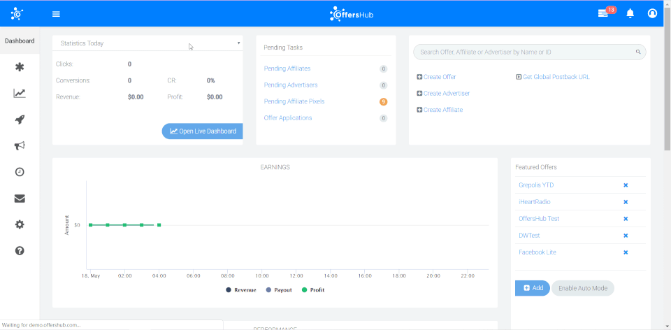 OffersHub is the Affiliate Marketing Software used for the below functionalities.