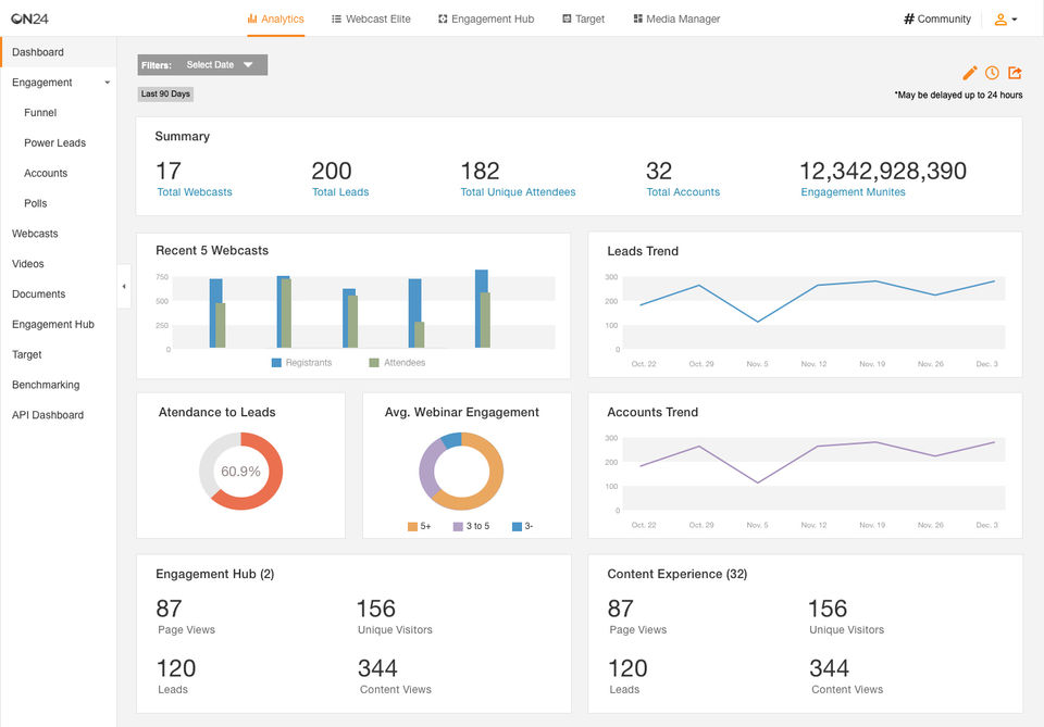 After months of chronic reliability issues with On24's webinar platform, and months of them attempting to fix it, we're left with no option but to switch platforms. The support or service of the company was utterly ineffective and despite repeated system failure, that were extremely costly to use, they not once offered any sort of refund or gesture of goodwill and when asked hid behind the legal fine print of the contract to avoid any thing to make it right. I was stunned.
