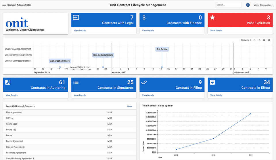 Onit is the Contract Management Software used for the below functionalities.