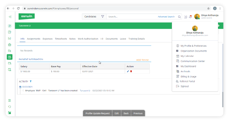 Oorwin is the Staffing Software used for the below functionalities.