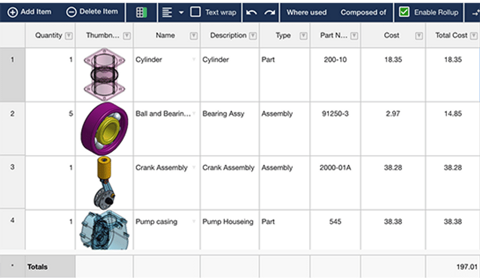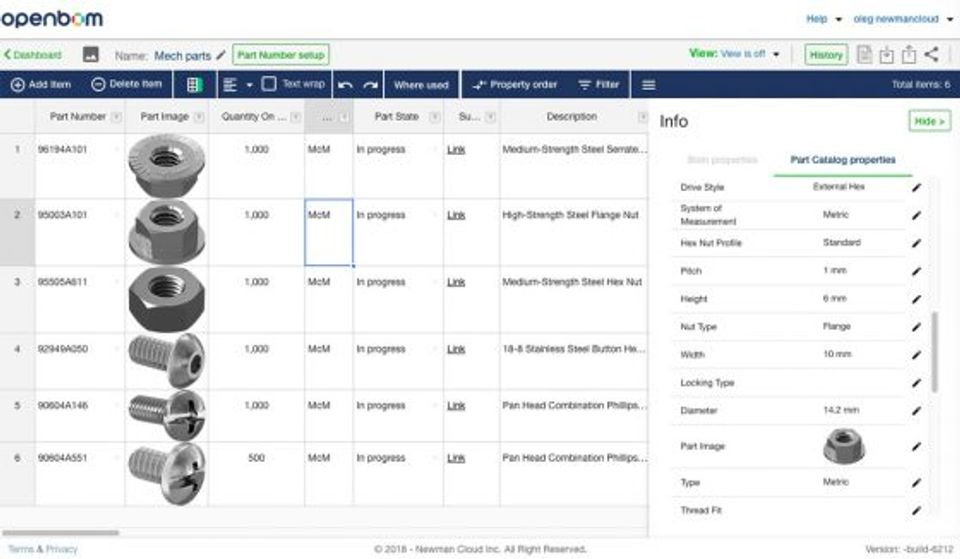 The OPENBOM interface is straightforward, easy to navigate. It has the basics of BOM management + forecaswting.