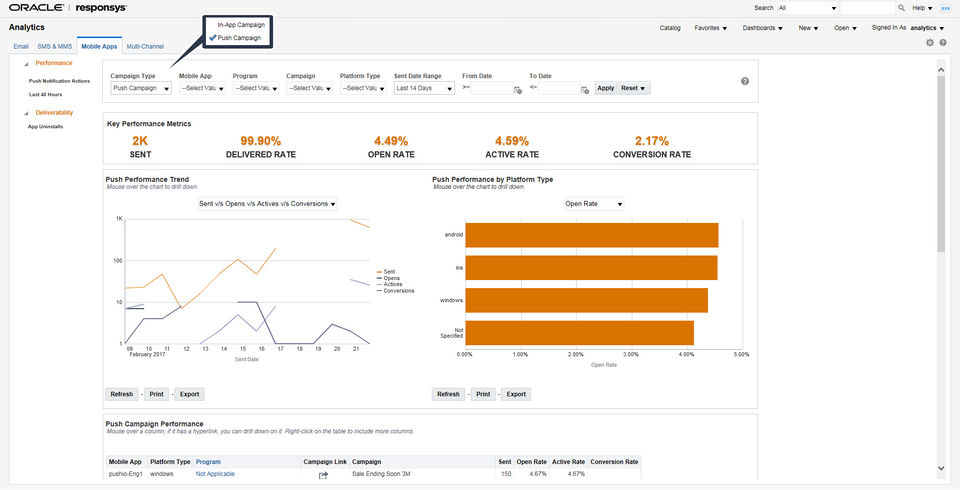Oracle Responsys is the Marketing Automation Software used for the below functionalities.