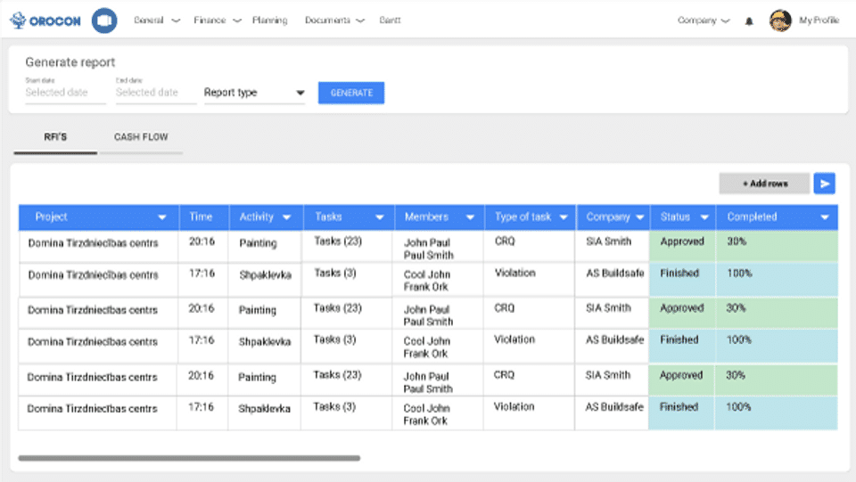 OROCON is the Construction Management Software used for the below functionalities.