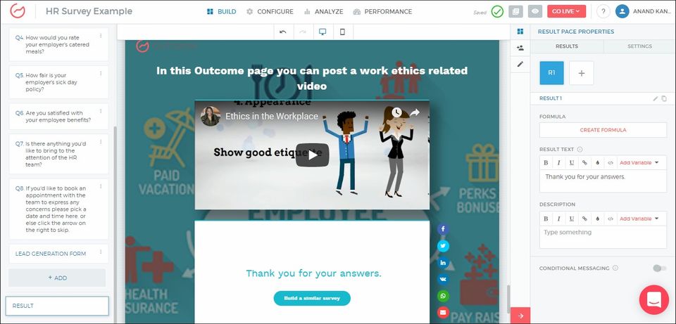 Our company is an active customer of Outgrow. Unfortunately their pricing for single features is incredibly intransparent. We currently use the "Calculator" funnel. In the free test month you get the full picture of possibilities, but once you convert to a paying customer all of a sudden the pricing jumps from 15$ to 25$ to 90$ per month just to use small features like "logical jump". I don't agree with this kind of pricing. Allthough we have bought a full year package we will look for friendlier alternatives
