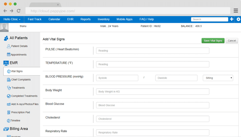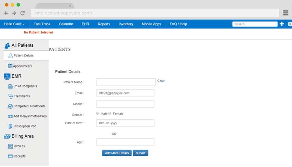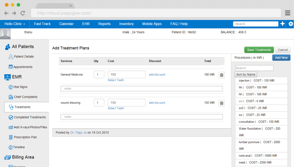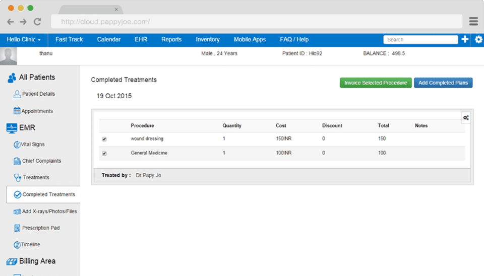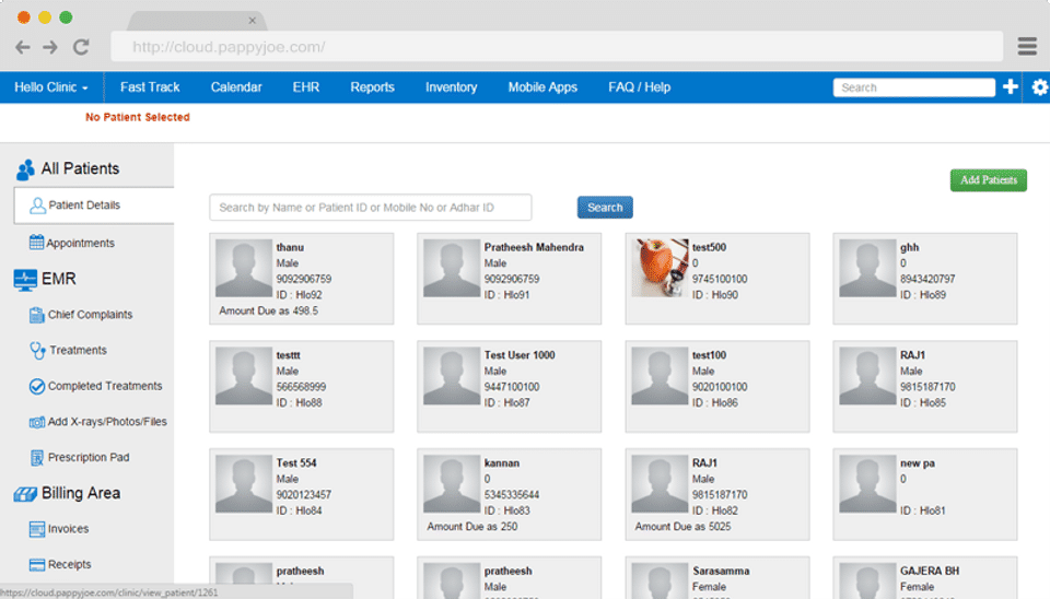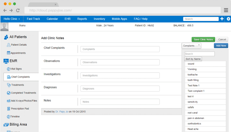 - Electronic Health Records (EHR/EMR): For each patient, you may create and preserve a complete case sheet, detailing chief lawsuits, observations, investigations, diagnoses, treatment plans, and prescriptions. You also can add relevant files like X-rays and pics.