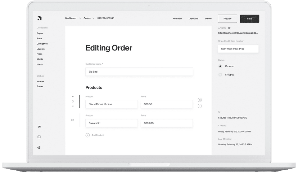 Admin UI: Automatically generated, fully customizable.