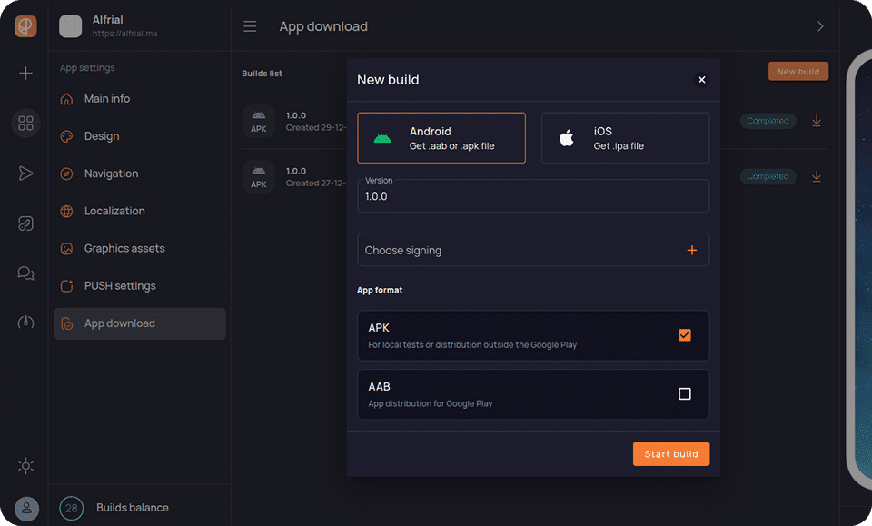 - 2 builds for Androind and IOS
