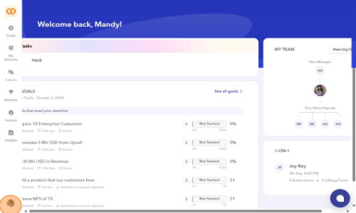 - Aligns team and individual OKRs with company goals