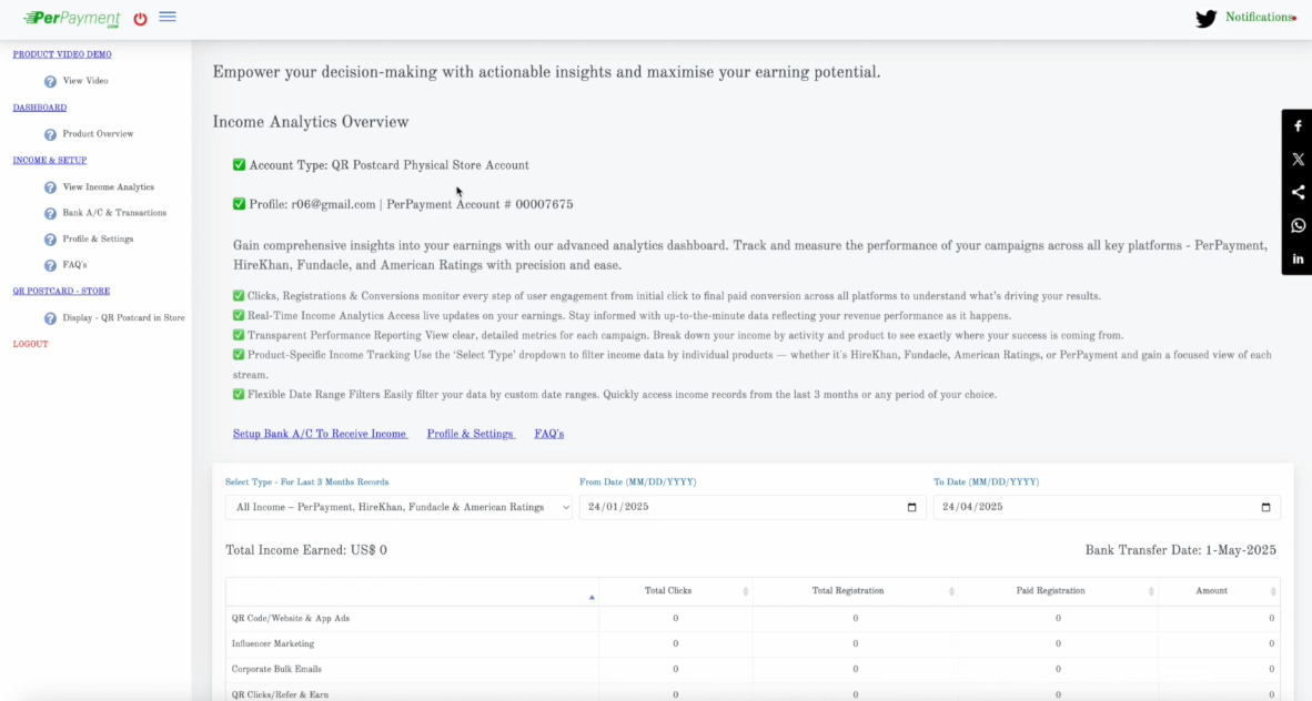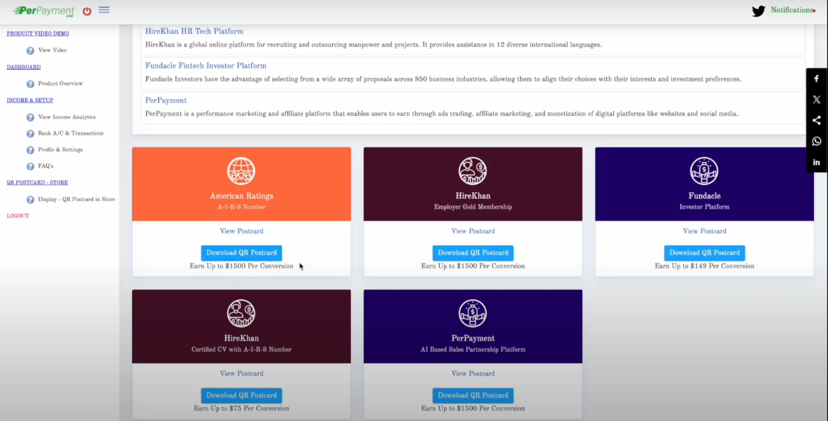In essence, PerPayment is more than a referral tool—it’s an income engine that combines AI recommendations, CRM visibility, marketing templates, and optional investment-based campaigning under one roof. It enables cross-channel promotion via email, SMS, WhatsApp, QR codes, and social sharing while providing instant access to performance data. Whether you’re an affiliate marketer, content creator, sales professional, or someone exploring digital income streams, PerPayment offers a low-entry yet structured framework for generating commissions through trusted digital products and AI‑guided workflows.