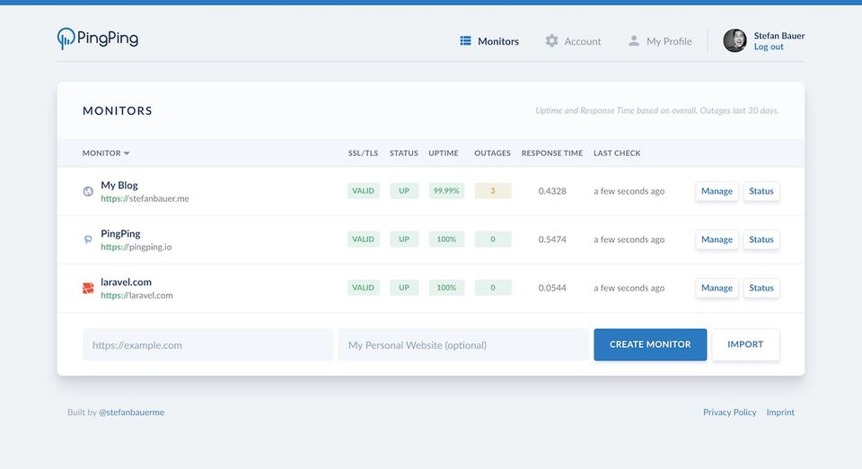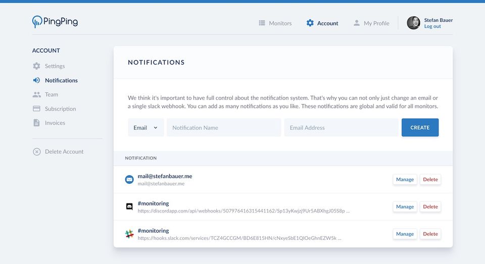 PingPing is the Website Monitoring Software used for the below functionalities.