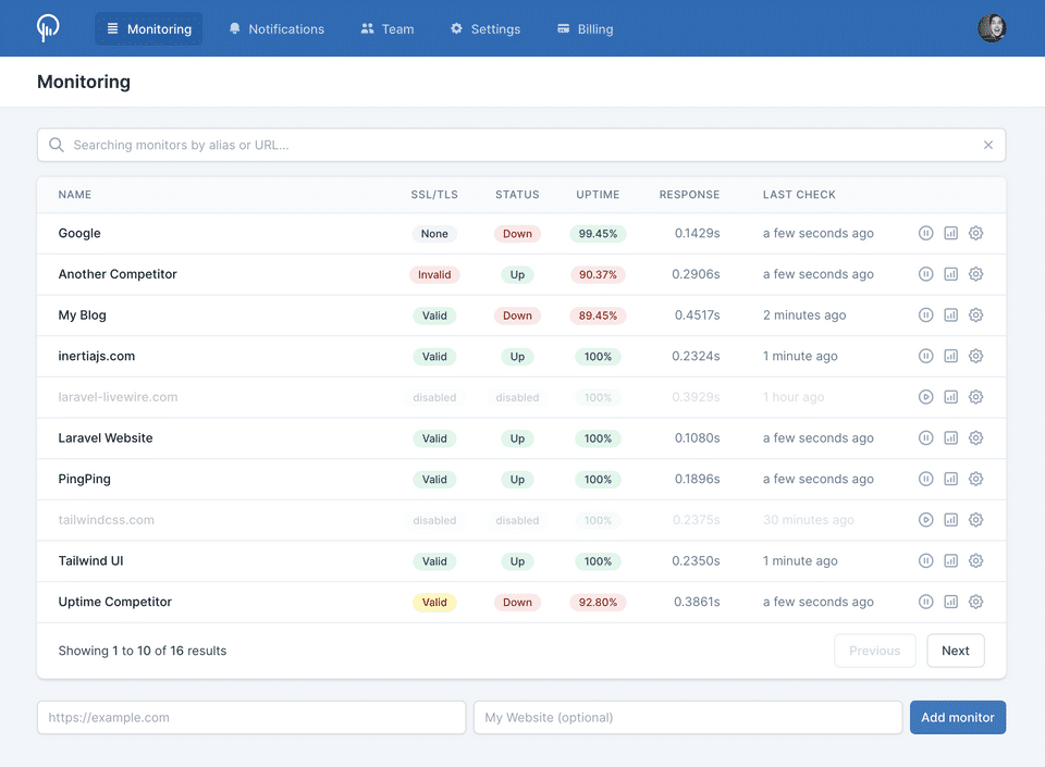 - 30 seconds uptime monitoring