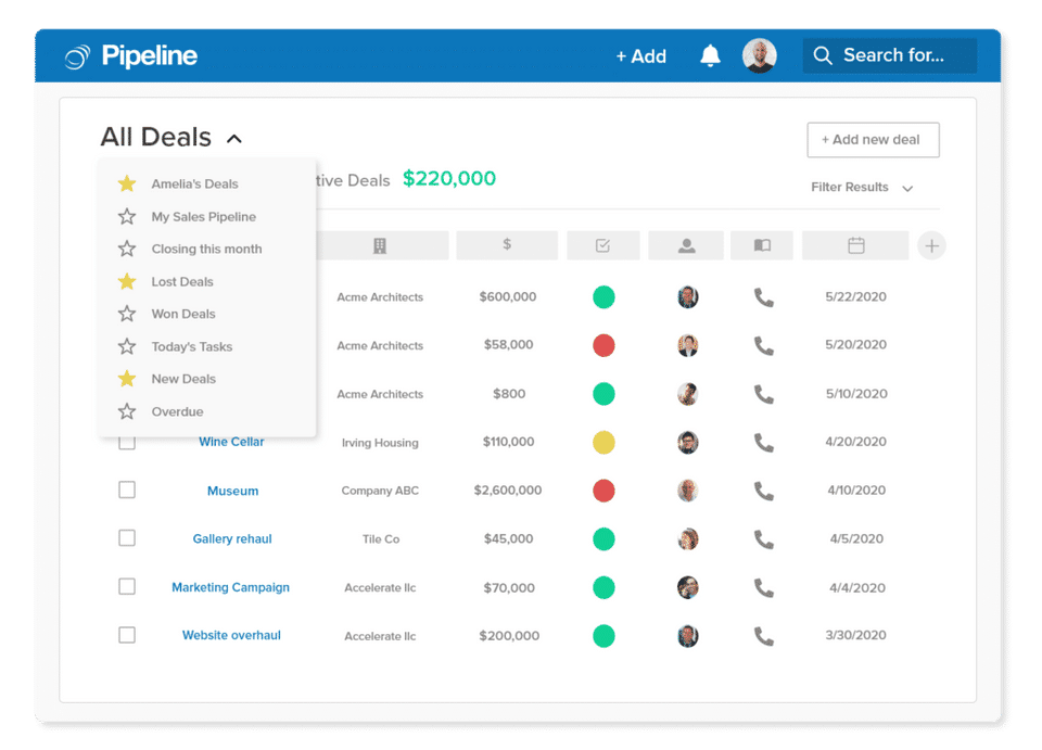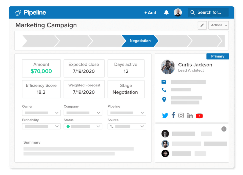 Pipeline CRM is the CRM Software used for the below functionalities.