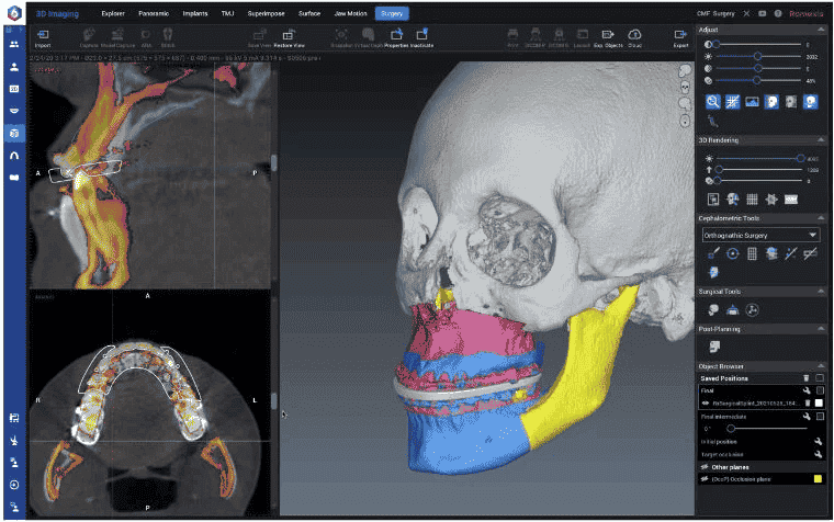 According to Planmeca Romexis Features listings, it supports orthodontic planning and implant placement modules