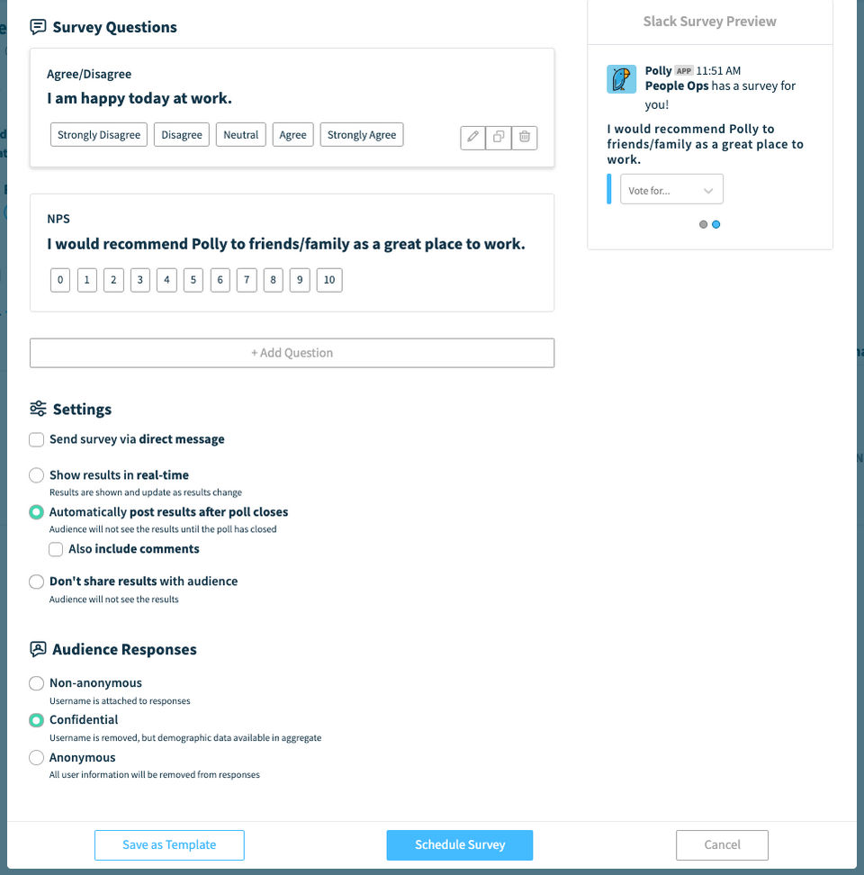 As an HR professional, I love to use Polly in Slack because it is so easy for our employees to respond. I get a better response rate than other survey tools because Polly makes it so easy for them to answer.