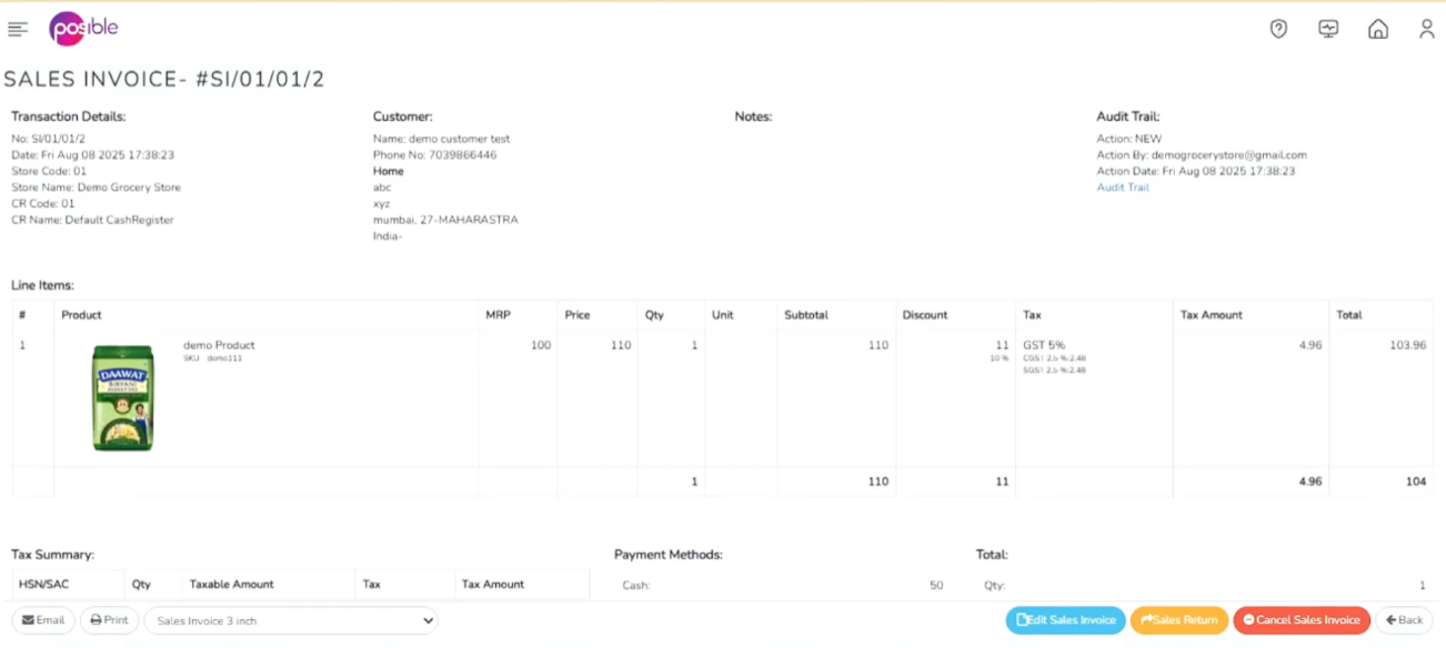 - POS invoicing
