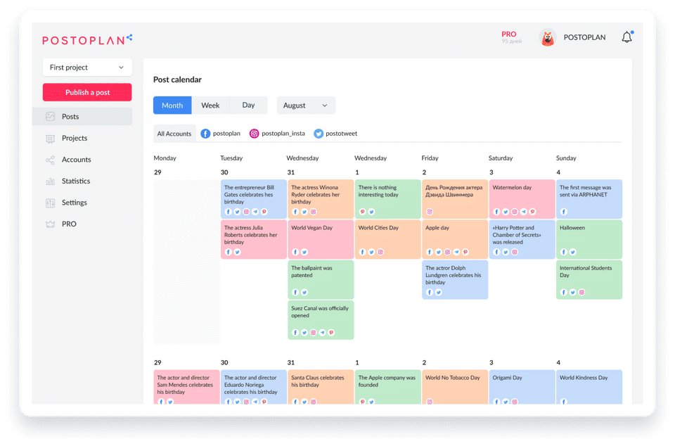 The features of POSTOPLAN is totally different and very good responsive from all other social media systems.