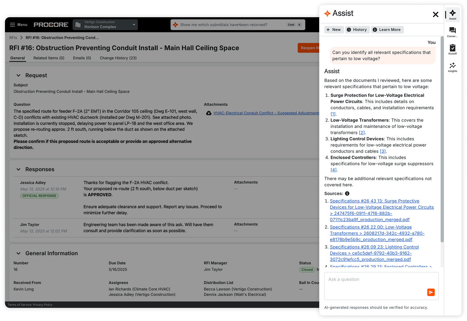 During active construction, Procore’s project management tools keep teams aligned. Features include RFI management, drawing and specification tracking, design coordination, quality and safety modules, and even BIM integration. This ensures that architects, engineers, contractors, and owners are always working from the latest project data, reducing errors and costly delays.