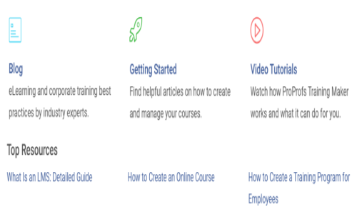 ProProfs Training Maker provides Help Guides,Video Guides,Blogs for the software training.