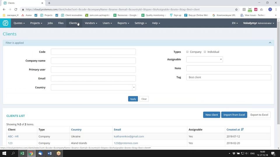 - Client and Vendor accounts