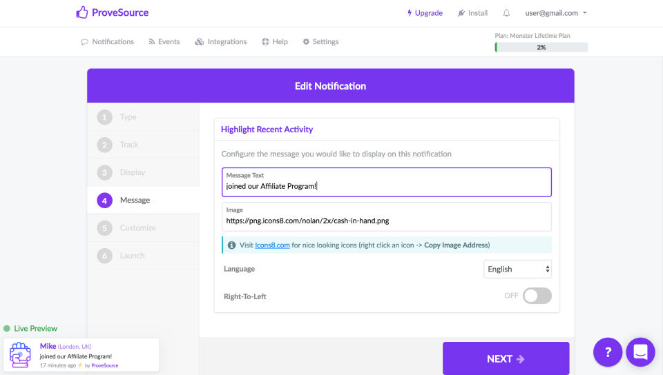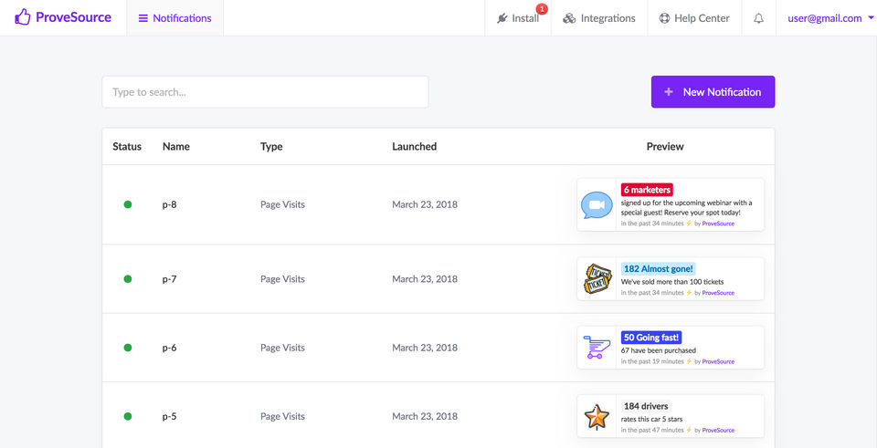 ProveSource is the Social Proof Marketing Software used for the below functionalities.