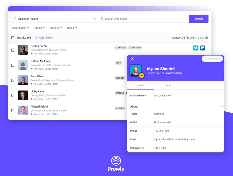 Prowly is the PR Software used for the below functionalities.