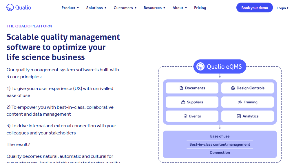 Qualio is an all-in-one eQMS platform that helps regulated companies build a strong culture of quality while achieving rapid compliance and operational efficiency. Built with life sciences in mind, the platform supports end-to-end quality management for organizations operating in medical devices, pharmaceuticals, biotech, healthcare software, and contract research sectors.