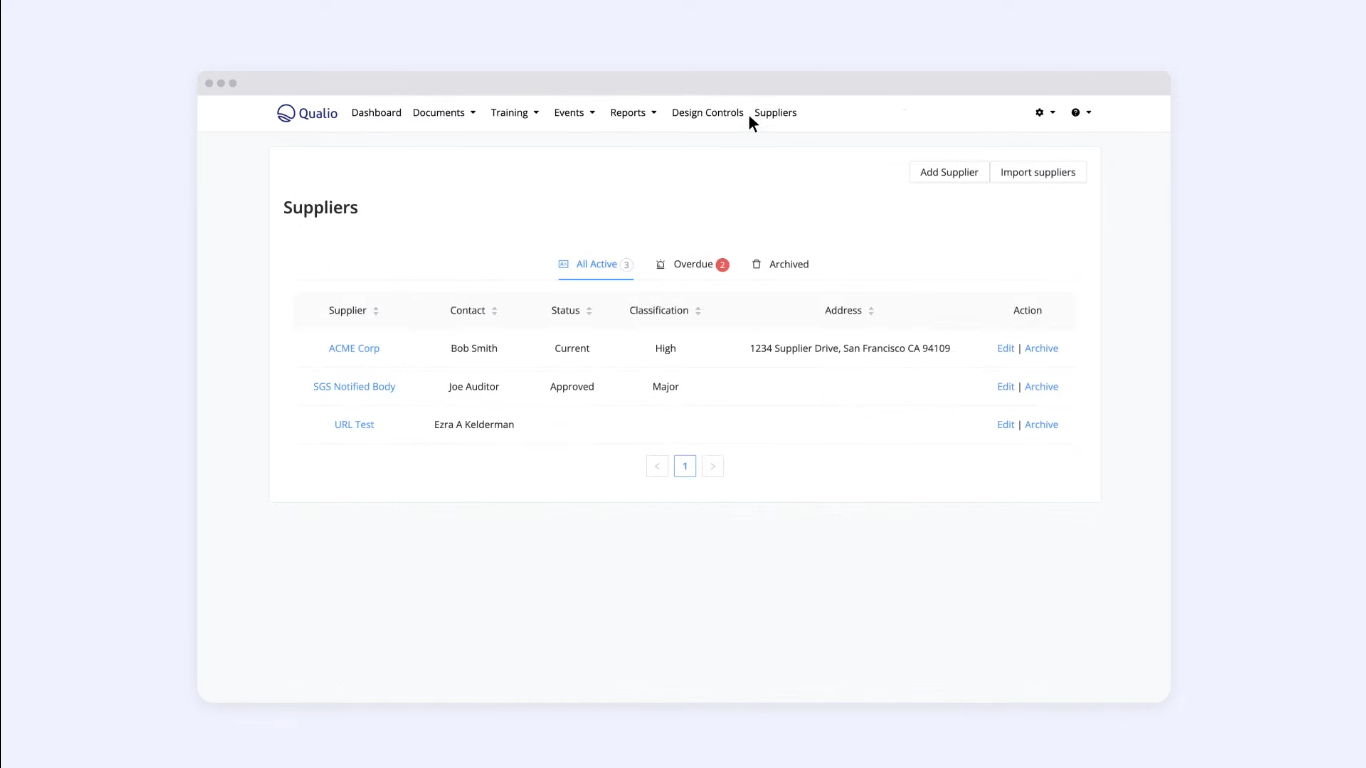 Supplier Management: Centralized supplier data, qualification tracking, and monitoring