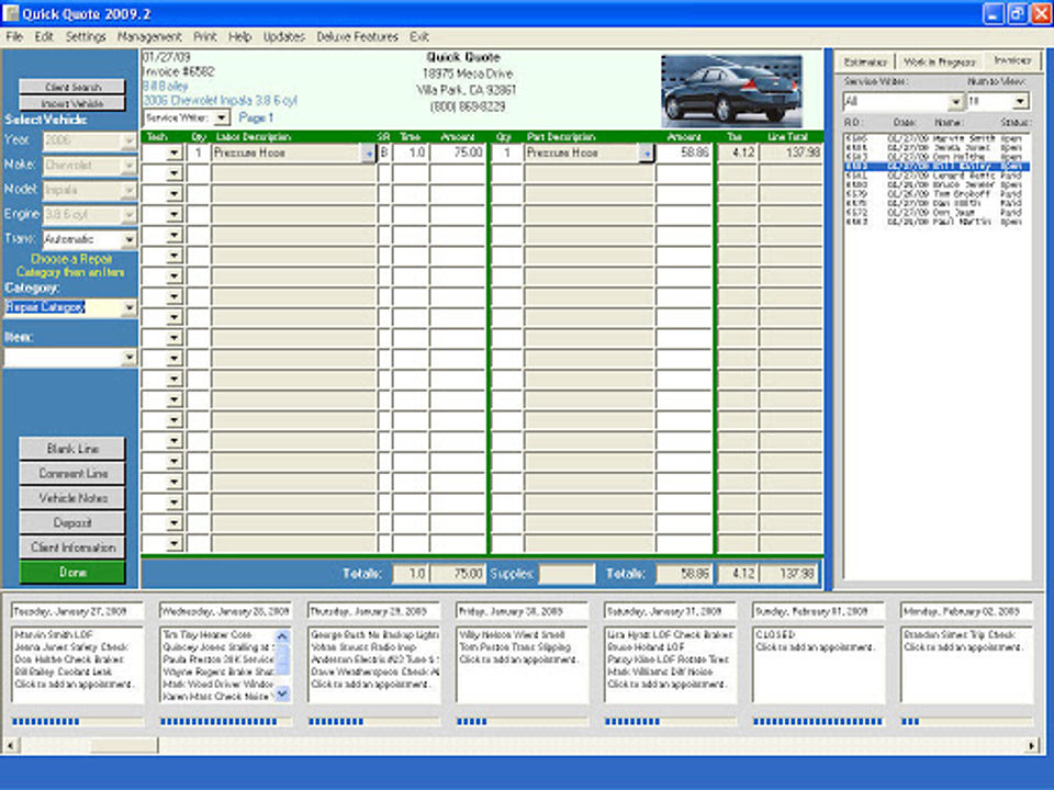 Quick Quote is the Auto Repair Software used for the below functionalities.