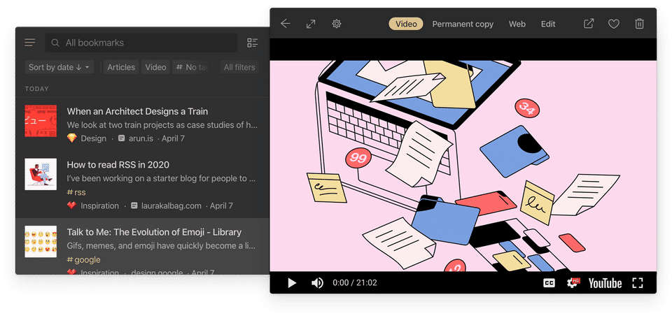 I love that it makes everything very easy to bookmark. Its cross platform is quite convenient and it updates frequently with aesthetically pleasing features. It also allows you to export bookmarks which I find quite useful.