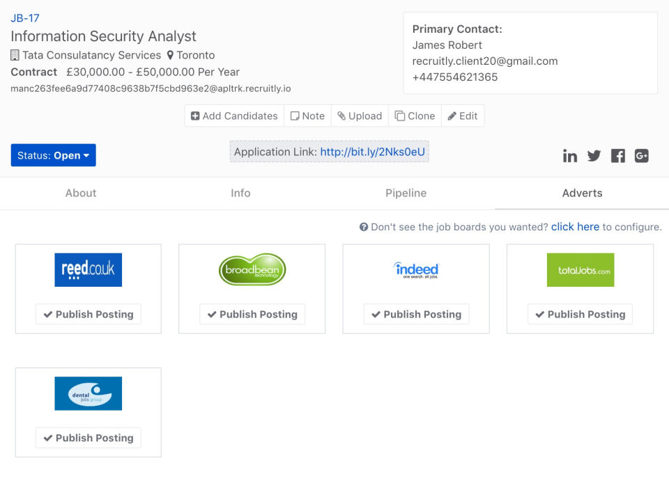 Recruitly is the Applicant Tracking System used for the below functionalities.