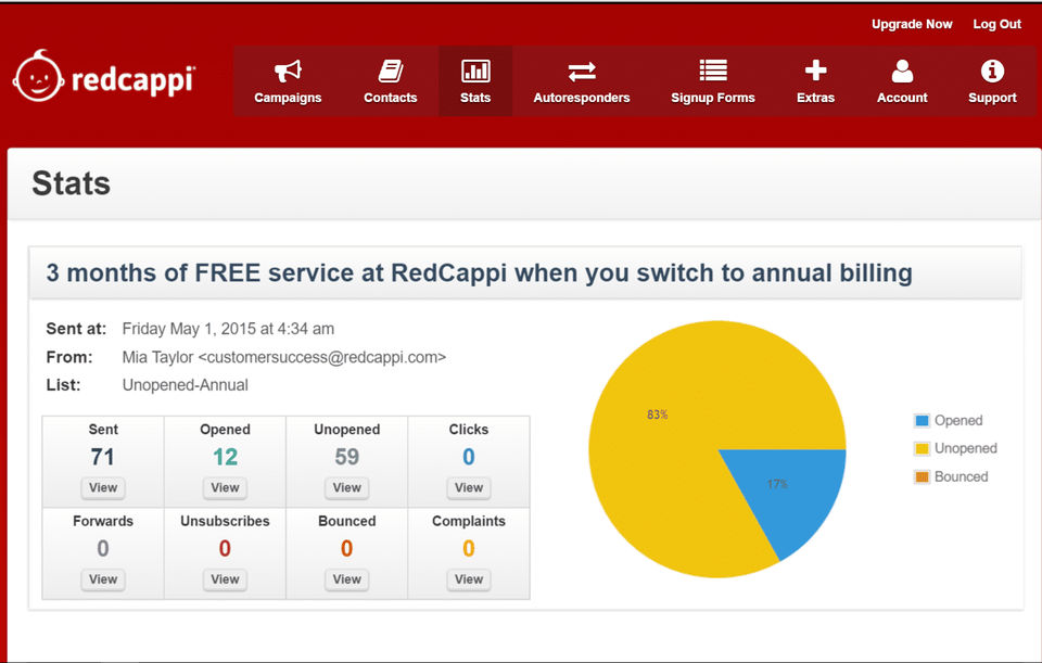 RedCappi is the Email Marketing Software used for the below functionalities.