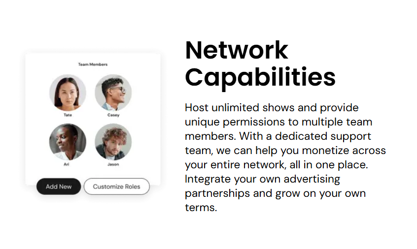 Scalability: Suitable for individual podcasters, production teams, and large networks.