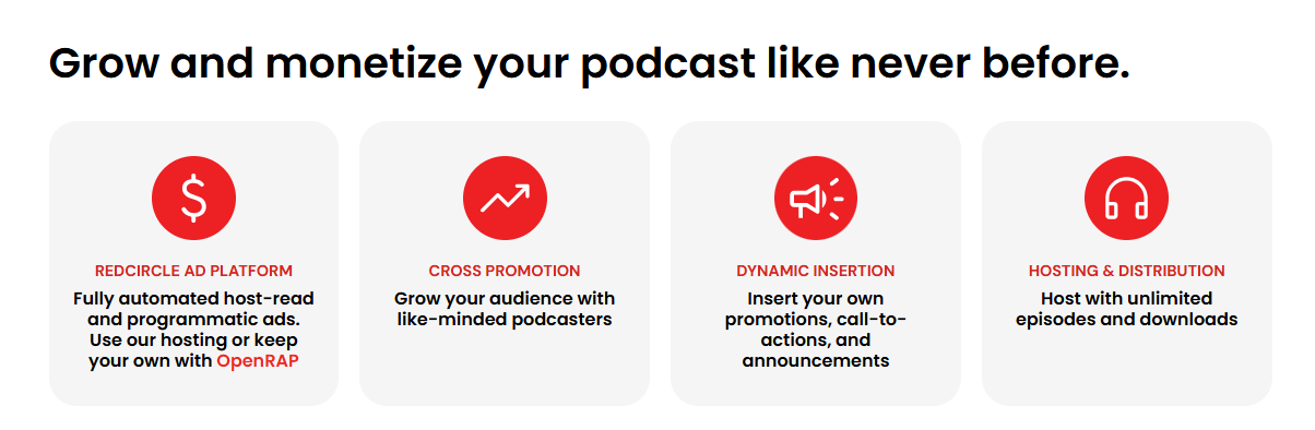 The RedCircle Ad Platform (RAP) is one of its standout features. Podcasters can participate in both programmatic ad campaigns and host-read sponsorships. Dynamic ad insertion ensures that new ads can be placed into old episodes, maximizing long-term revenue potential. Podcasters also benefit from real-time reporting that provides insights into campaign performance and earnings.
