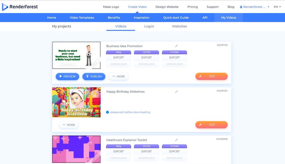 Top 5 Renderforest features