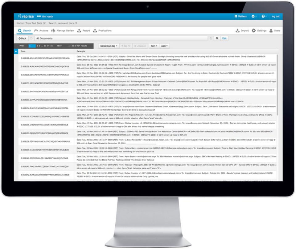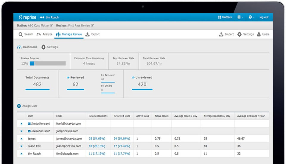 Our firm uses an internal document database system, which we supplement with cloud based ediscovery tools to meet particular needs. Reprise is one of those tools.