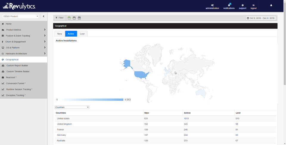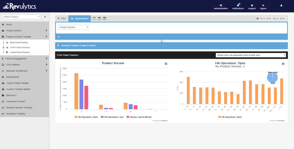 Revulytics Usage Intelligence is the Application Development Software used for the below functionalities.