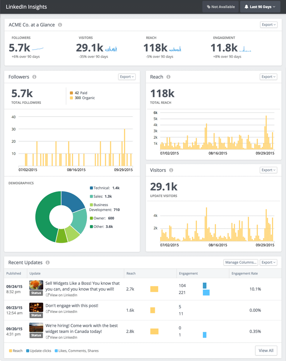 - Deeper social media analysis: Facebook Insights Instagram Posts Insights Instagram Stories Insights Twitter Analytics LinkedIn Business Pages