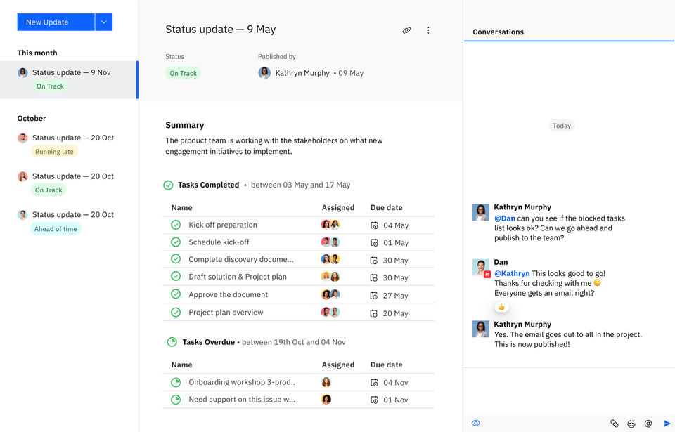 - Status updates