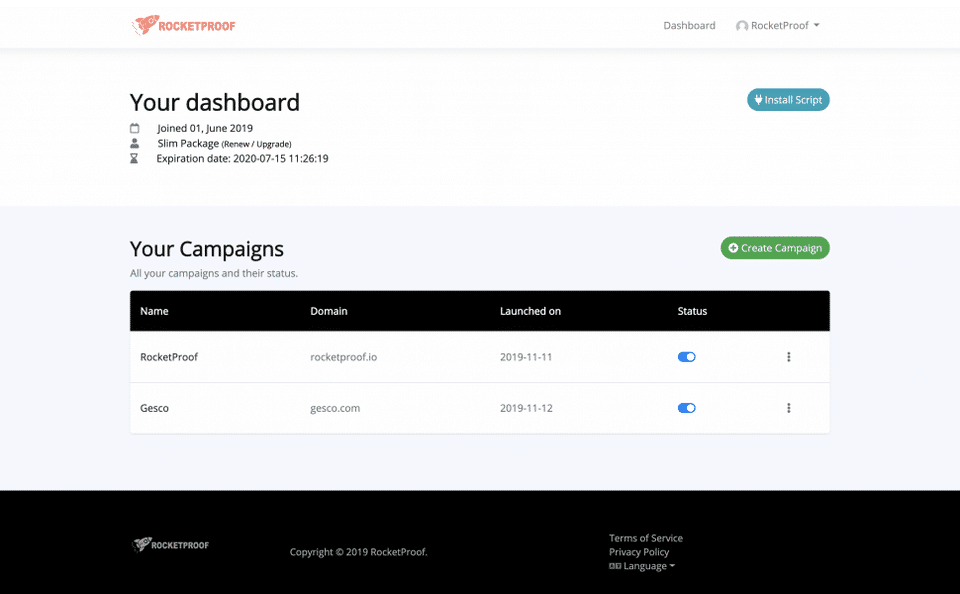 RocketProof is allowed 0 Days Free Trial.