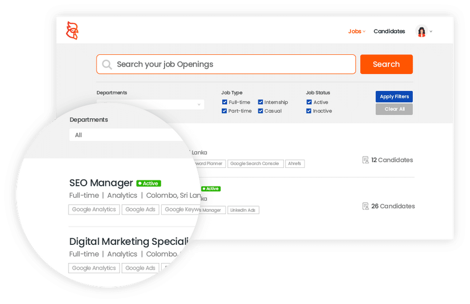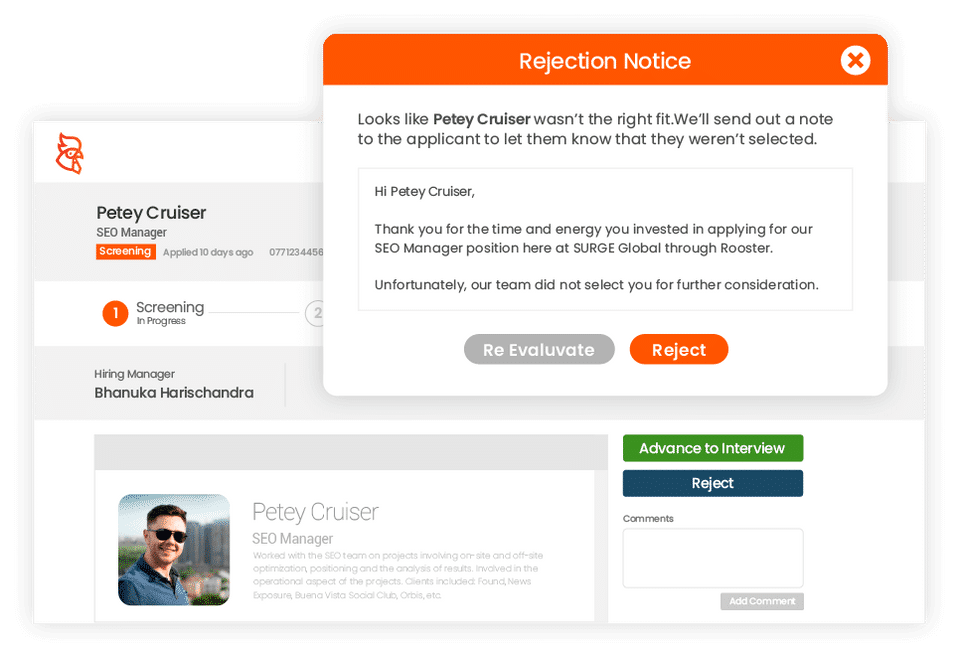 Rooster is the Applicant Tracking System used for the below functionalities.