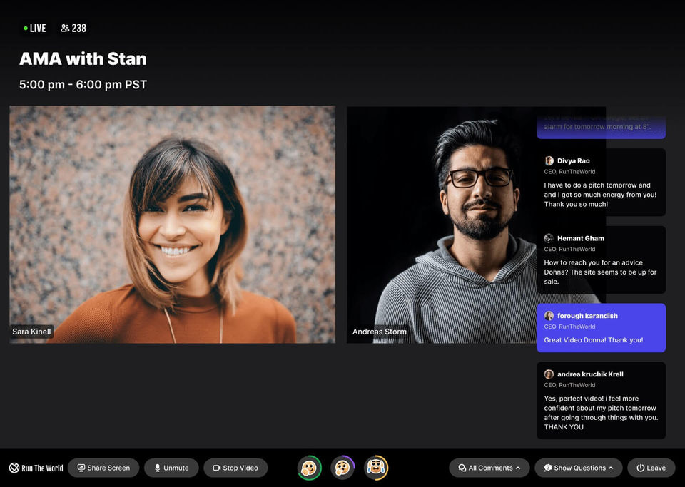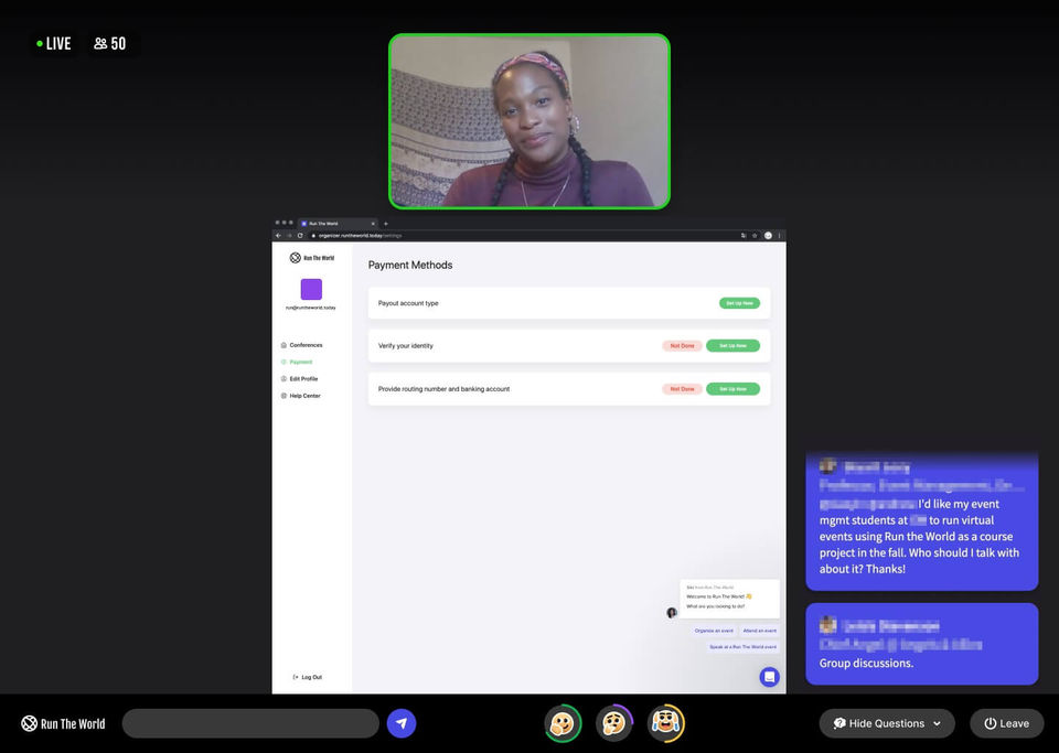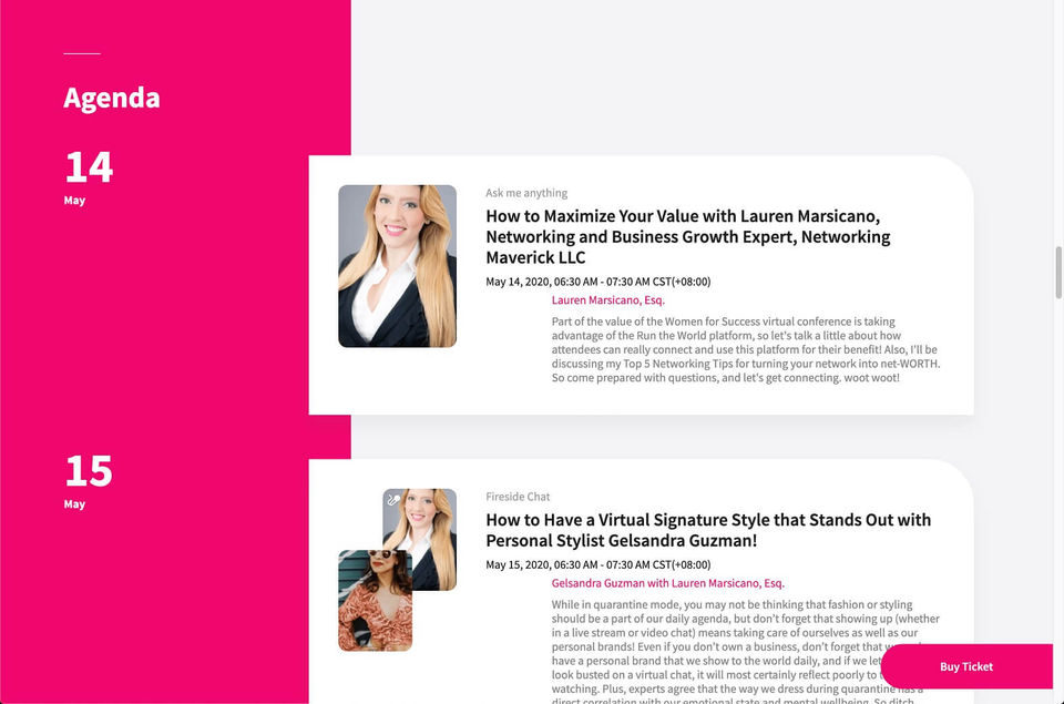 Run The World is the Virtual Event Platforms used for the below functionalities.