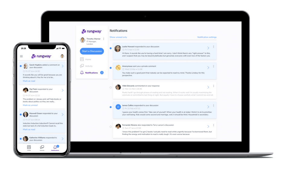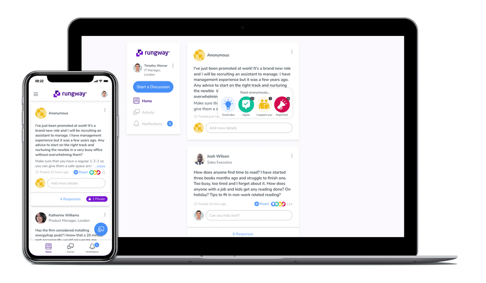Rungway has really helped connectivity during the pandemic, where face to contact is very difficult. The platform has become a good way of seeking help from others and seeing if others are facing similar issues - and to learn how they solved those. It has also been very useful for engagement leading up to company events, where users can answer pulse surveys - this has led to very engaging Q&A sessions.