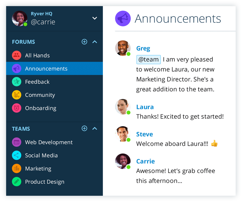 We were trying to solve problems with communication and transparency between leadership and staff. It was a novelty at first and encouraged openness. Staff felt comfortable sharing news, updates, and praises.