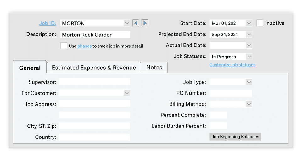 - Advanced job costing (by phase an