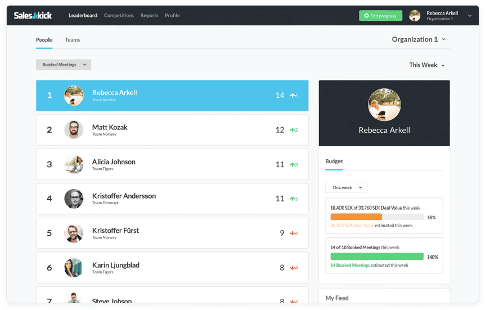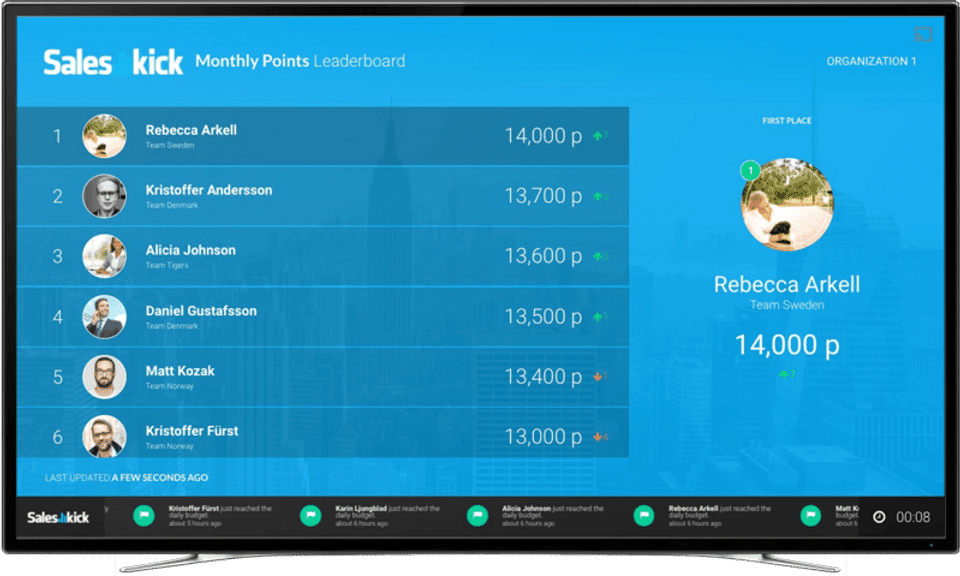 Saleskick is the Gamification Software used for the below functionalities.