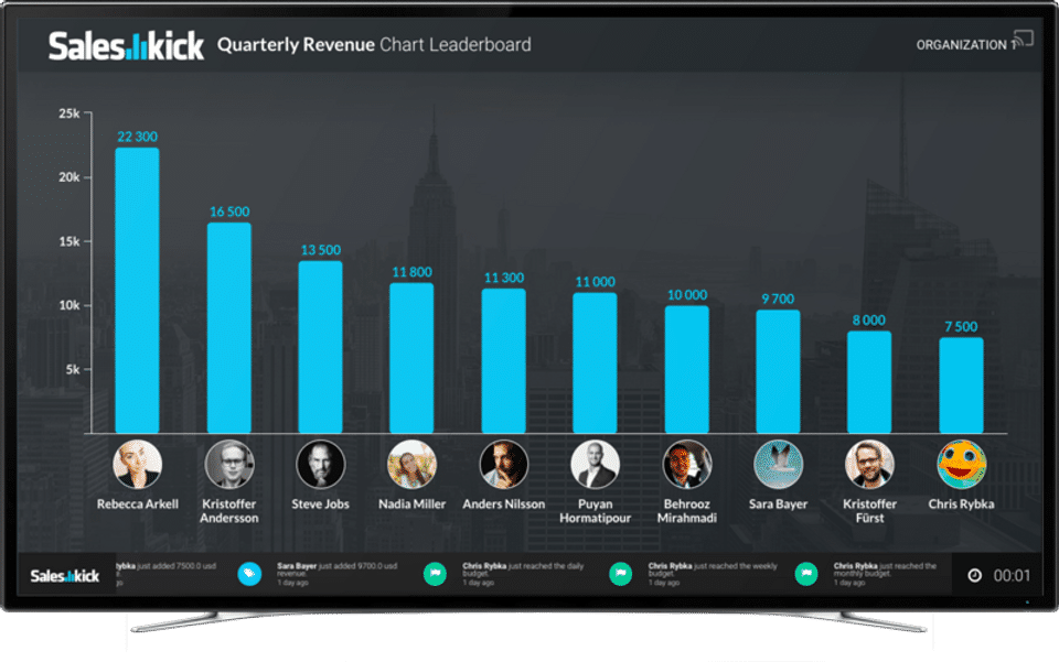 I love this software. Great for sales teams to keep everyone in the know how each one is performing.