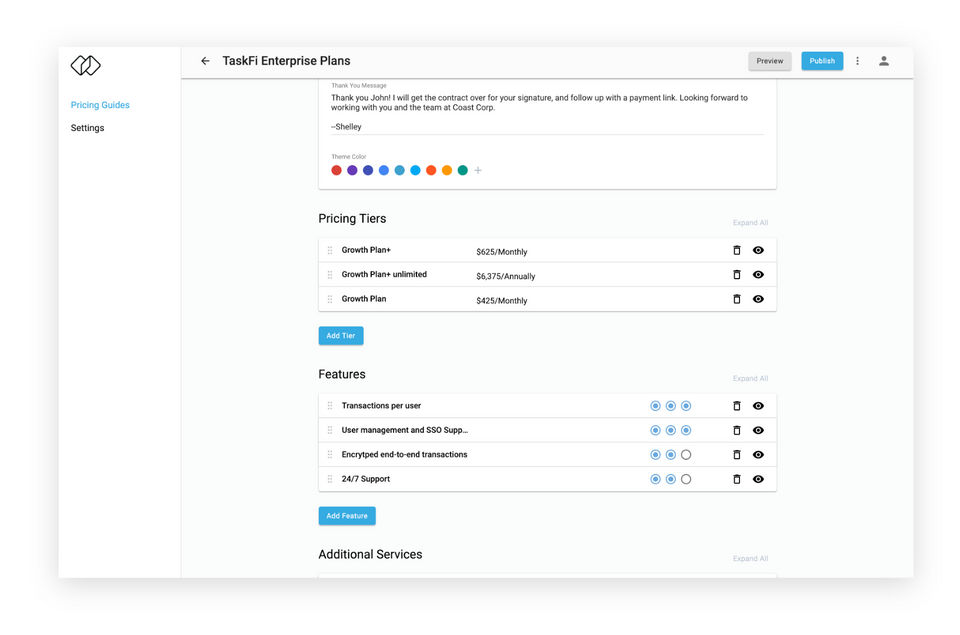 I like receiving actionable insights about our prospects' interactions with our pricing guides. It shows us where the prospect is focusing their attention which allows us to better tailor our sales conversations. I also enjoy the fact that they take my feedback seriously and incorporate that which makes sense into the product.