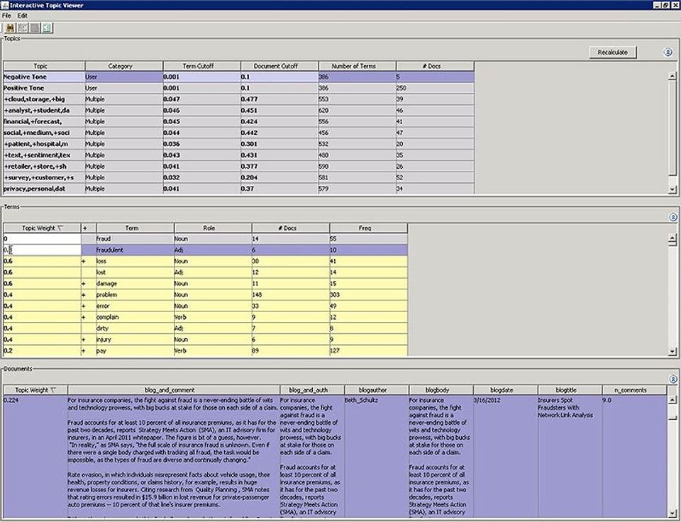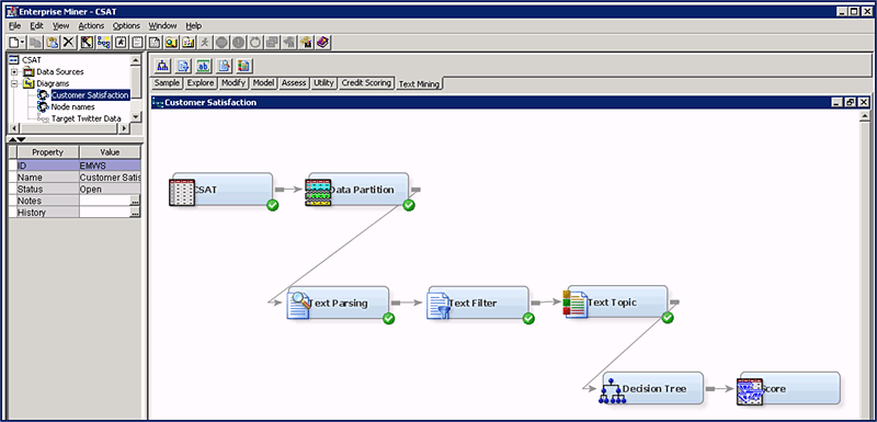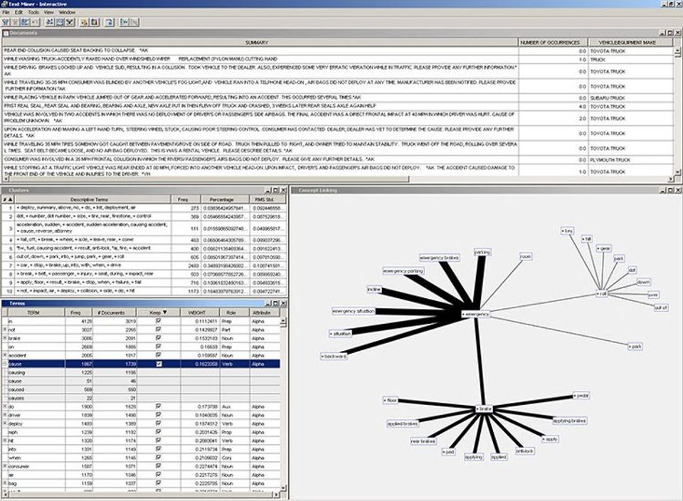 SAS Text Miner is the Text Mining Software used for the below functionalities.