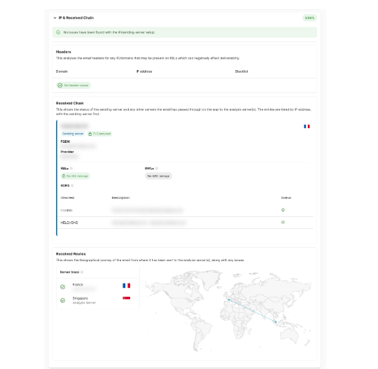 Blacklist & Inbox Placement Testing – Identifies blocked IPs/domains and simulates delivery outcomes.